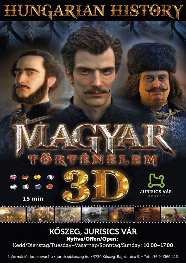 Maďarské dějiny jsou prezentovány v 15minutovém 3D filmu na hradě Jurisics. Dílo vytvořené technologií 3D zobrazuje rozhodující události našich dějin od dobývání až po současnost. Vše ve stejné technologii jako Avatar 2: 3D v hollywoodské kvalitě. Patnáctiminutový film nás seznámí s pokřtěním Štěpána, vpádem Tatarů, vítězstvím v Nándorfehérváru, korunovací Matyáše králem, reformní érou, Budapeští na počátku minulého století a dvěma světovými válkami. Mezi virtuálními místy pro cestování v čase jsou raně středověké hrady Buda a Visegrád, bazilika Székesfehérvár, knihovna krále Matyáše, bitva u Moháče, stanový tábor Szécsényiho parlamentu a Budapešť během událostí v roce 1956. Podrobnosti o filmu: https://www.youtube.com/watch?v=oK5P00HY5ds. Vedle maďarštiny je film k dispozici také v angličtině, němčině, španělštině, francouzštině, italštině, ruštině, čínštině. Vstupné se platí zvlášť: 800.-Ft Hrad s kartou: sleva 50% |
